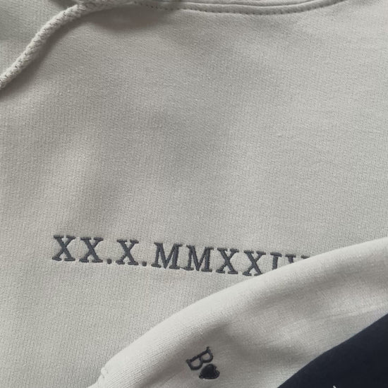 Na przodzie bluzy znajduje się wyhaftowana data ważnego dnia, która zawsze będzie bliski Waszym sercom, a na lewym rękawie inicjał z serduszkiem bliskiej osoby - symbol ciepłych uczuć. Bluzy uszyte sa z miękkiej, wysokojakościowej bawełny w klasycznym kroju. Idealne, by otulić Was wygodą i stylem, gdy wracacie myślami do tych wyjątkowych chwil. Subtelny tekst opowiada Waszą historię, przyciągając wzrok i budząc wspomnienia.